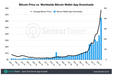 Gráfico mostra semelhança entre variação das Bitcoins e fluxo de downloads (Imagem: Sensor Tower)